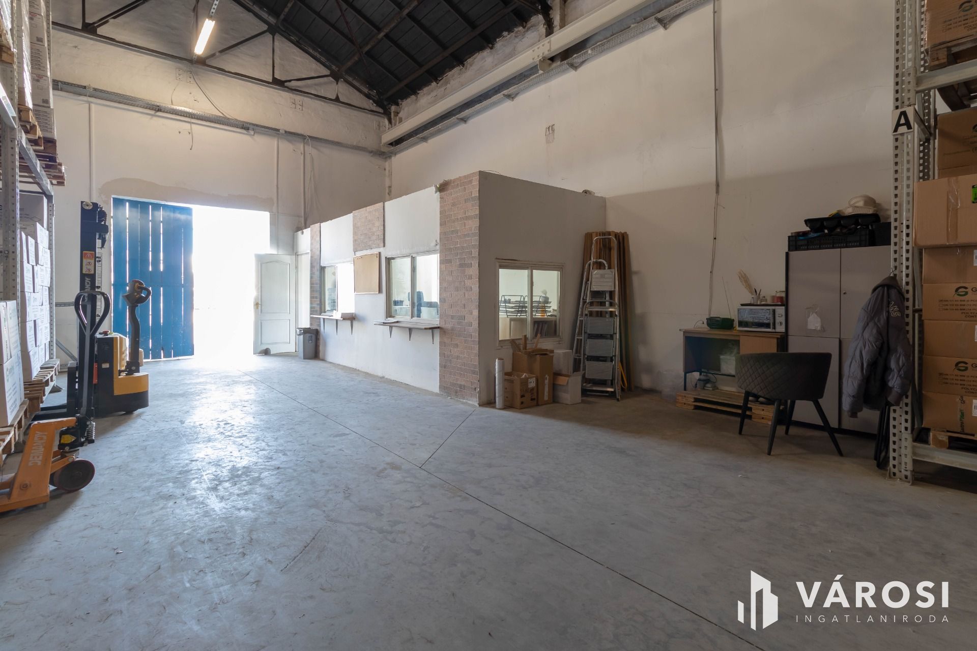 600 m2-es raktár polcrendszerrel, irodával, mosdóval kiadó