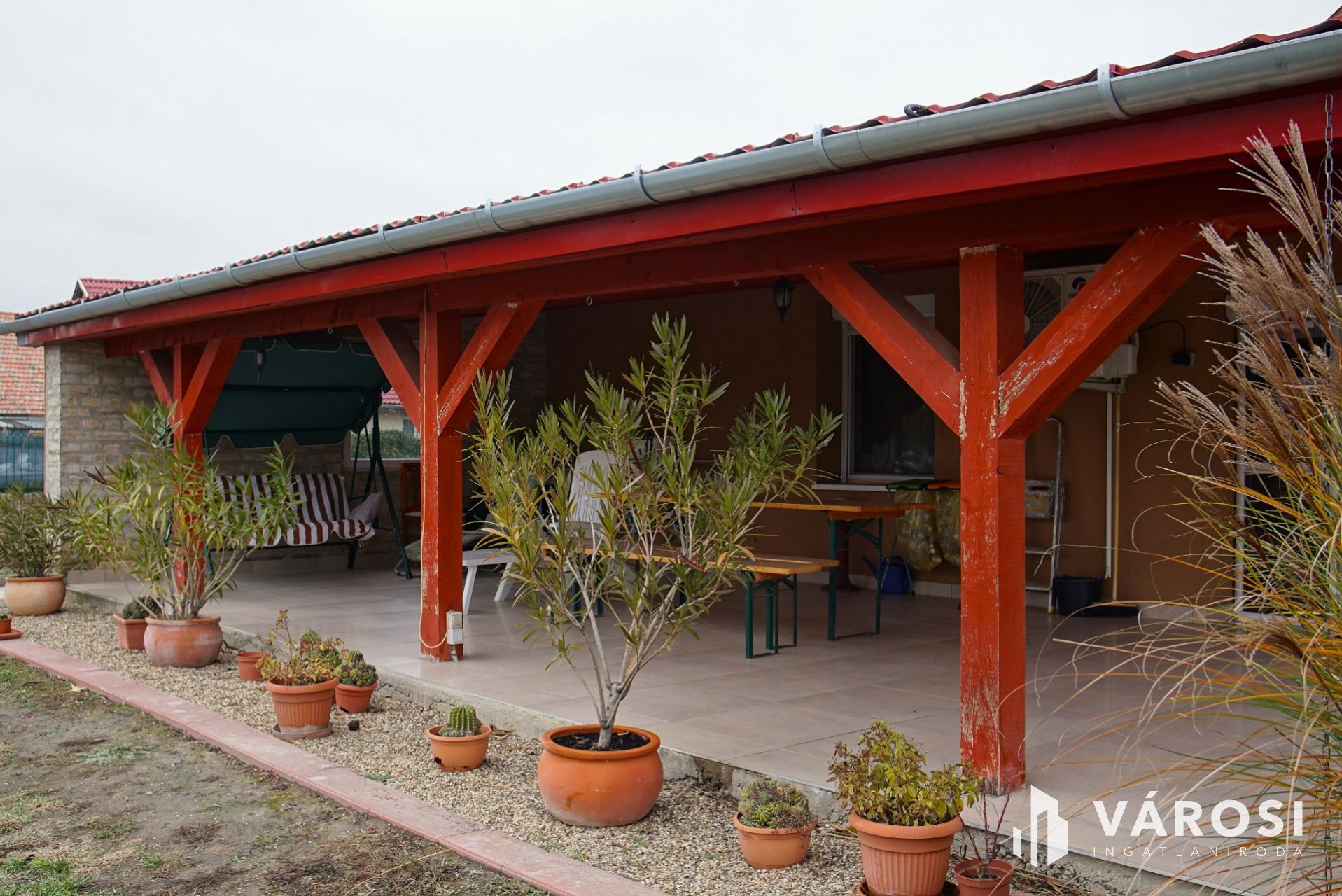 A truly sustainable, spacious, and excellent condition family home is for sale in Röszke! Thanks to its practical layout, it is also suitable for larger families. The house was built in two phases: the original adobe house was completely renovated and extended by the previous owner with a brick-built wing towards the outbuildings. This resulted in a 131 sqm living space, which also includes a 40 sqm covered terrace opening from the living room, connecting the house to the landscaped backyard. Solar collectors are installed on the terrace roof, the outdoor unit of the engineering systems is on the terrace, and the indoor units are located in the utility room next to the modern combi boiler. Thanks to this system, the annual electricity bill is only about 20,000 HUF, covering the grid usage fee. In 2020, the roof was replaced and the solar panel system was installed, further modernizing the property.