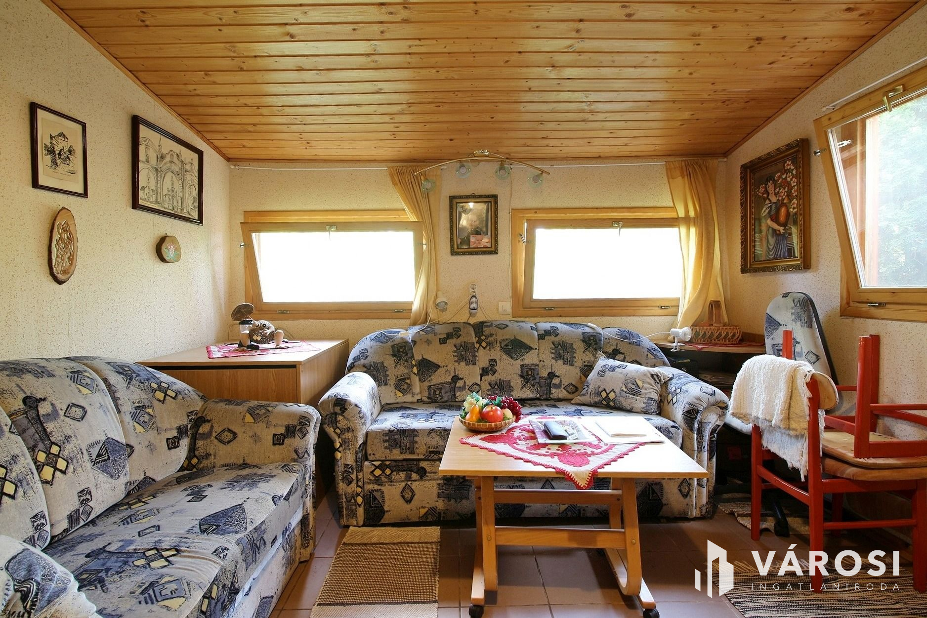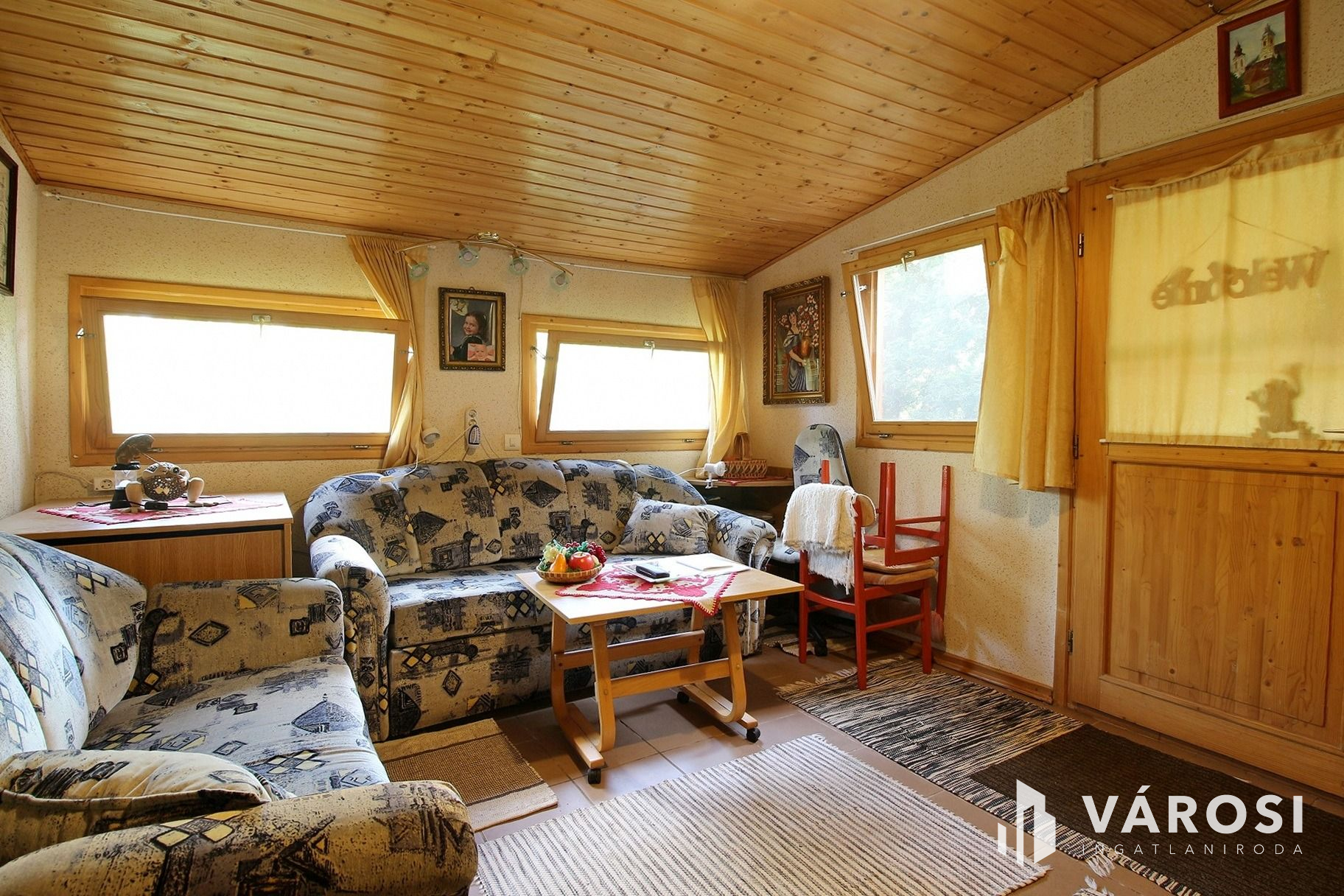 A telken található épület, beton alapon álló zártszelvény vázas, szigetelt faház. Vezetékes víz, villany a házban, gázcsatlakozási lehetőség az utcában, valamint kábeltévé és internet is elérhető. A ház konyhával és zuhanyzóval rendelkezik, külön helyiségben vízöblítéses wc van, de jelenleg fűtés hiányában állandó lakás céljára nem alkalmas. A fő épületet, katonás rendben, felcímkézett dobozokkal bepakolt tárolók és szerszámos helyiség egészíti ki, valamint egy betonozott falú pince és szintén betonozott falú komposztáló.