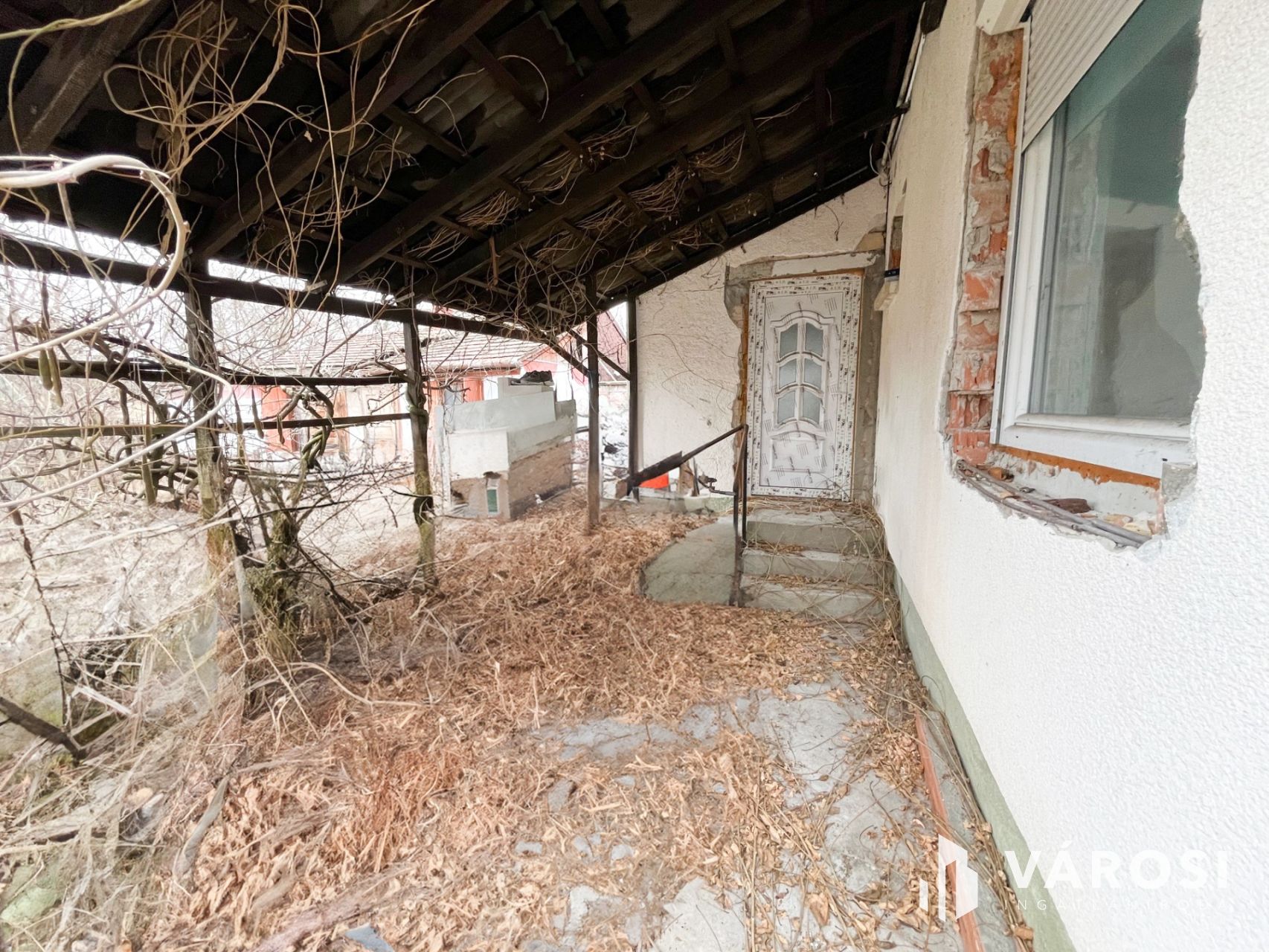 -100nm-es családi ház(konyha, nappali, 3 szoba, előszoba, fürdőszoba, különálló wc) mellett 15nm-es fedett terasz és 30nm-es melléképület és 4nm-es pince
