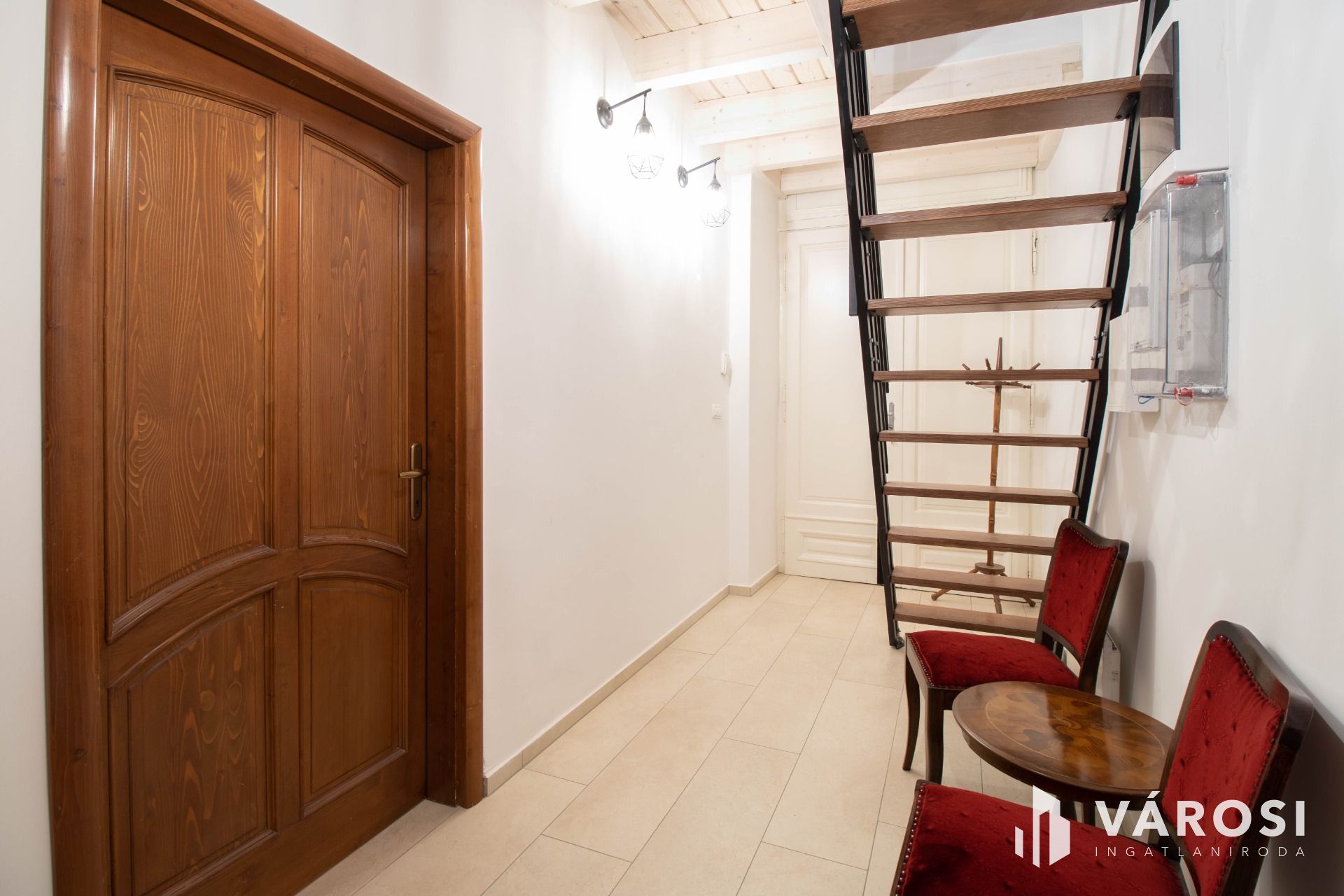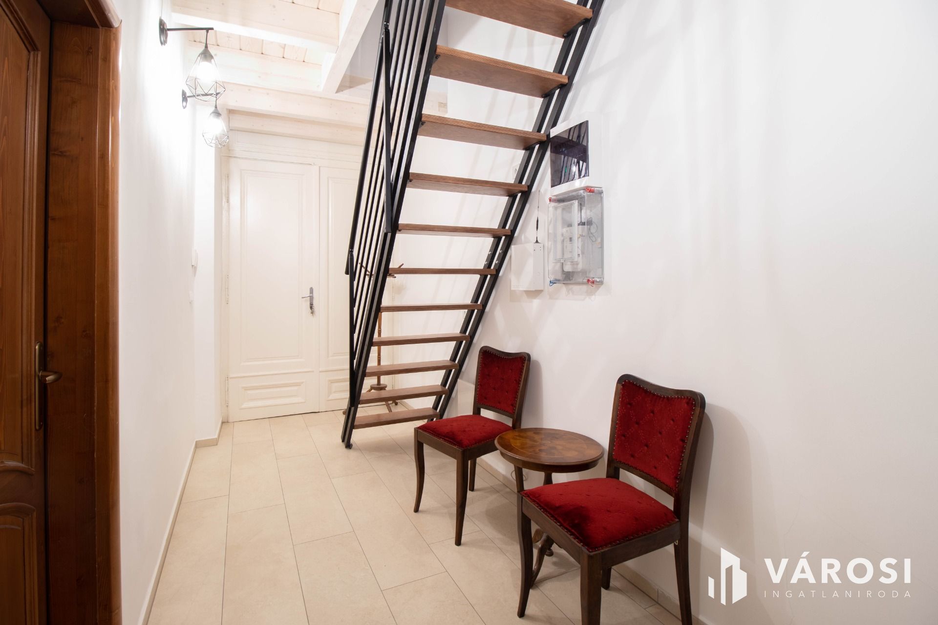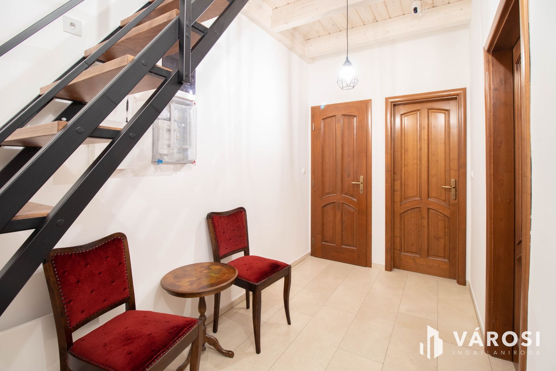A földszinten egy, a fotókon is látható, a földszinti ügyvédi irodával közös használatú ügyfélváró helyiség került kialakításra, ahol stílusosan fogadhatja ügyfeleit. Itt található a felújított mosdó is.