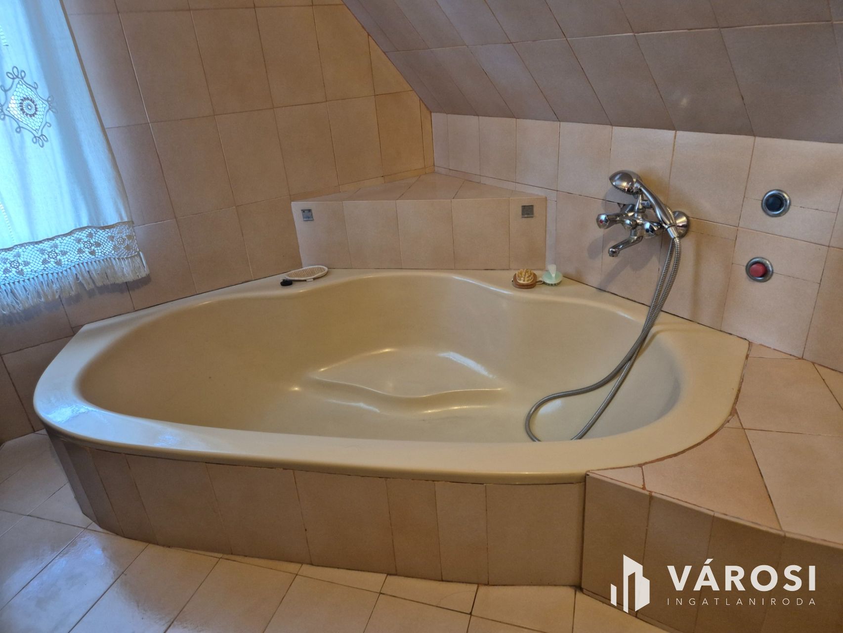 . A család kényelmét két fürdőszoba és egy különálló WC szolgálja. A nyári forróságot a beépített klíma enyhíti.