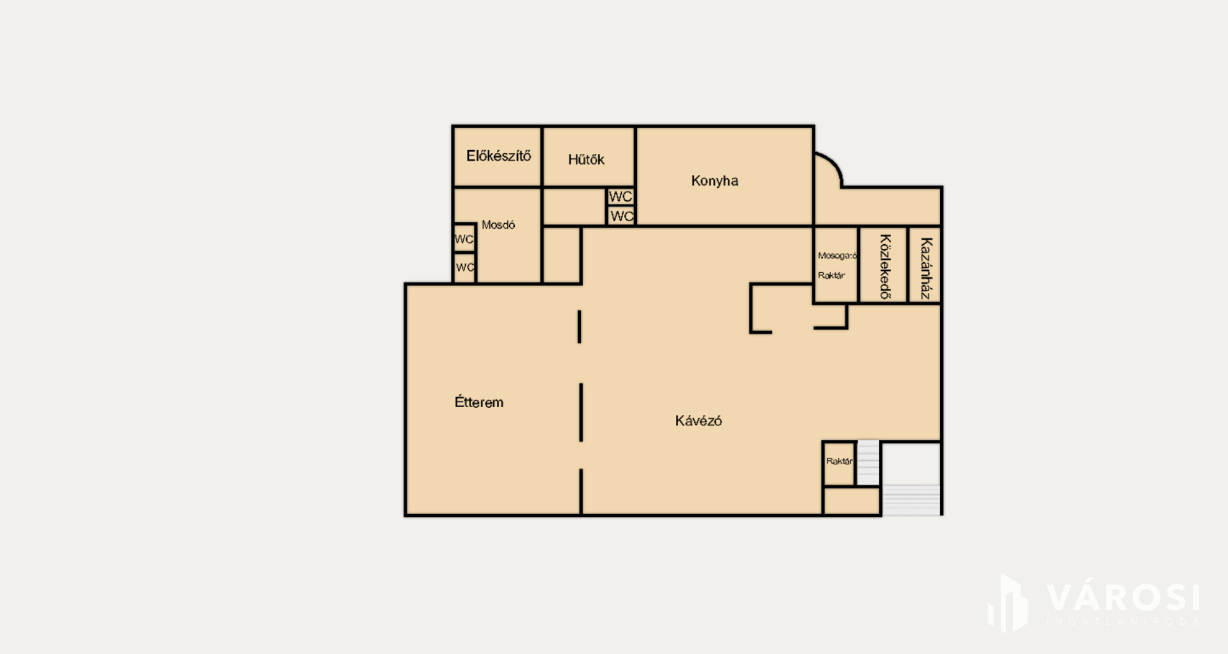 • +100 m²-es, teljesen felszerelt melléképület (nagykonyha, előkészítő, raktár, öltöző, saját kazán)