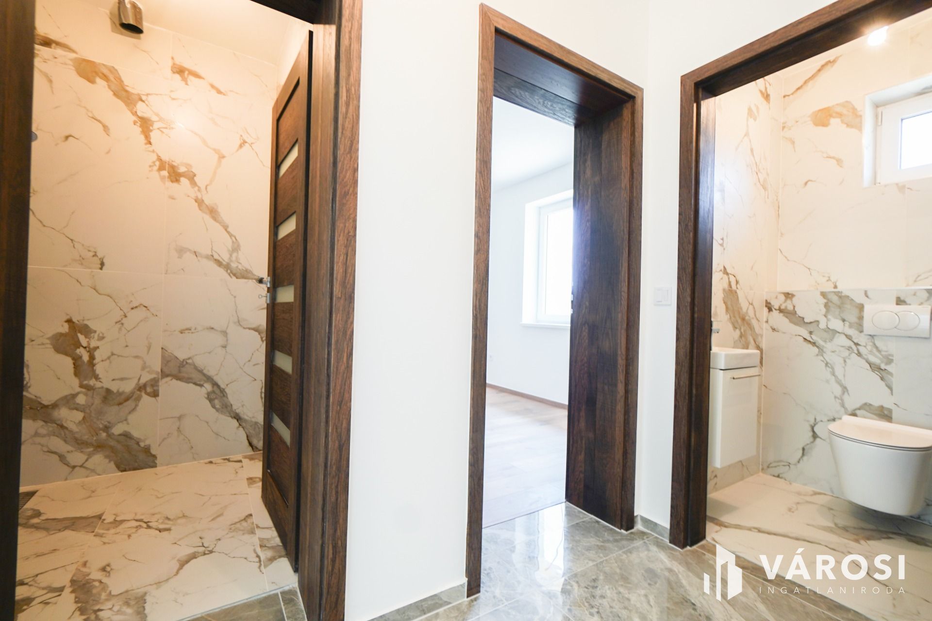 Nívós fal és padlóburkolatokat helyeztek el a fürdőszobáktól kezdve(2 darab is található a lakásban így duplakomfortos) a napaliig.