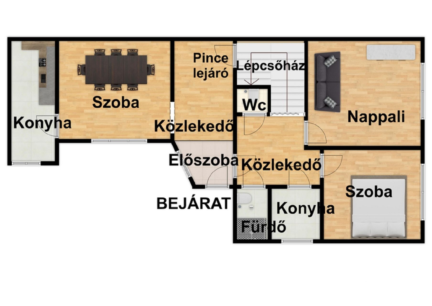 A lakóingatlan könnyedén 2 különálló részre bontható így lehetőséget biztosítva többgenerációs családok számára is.