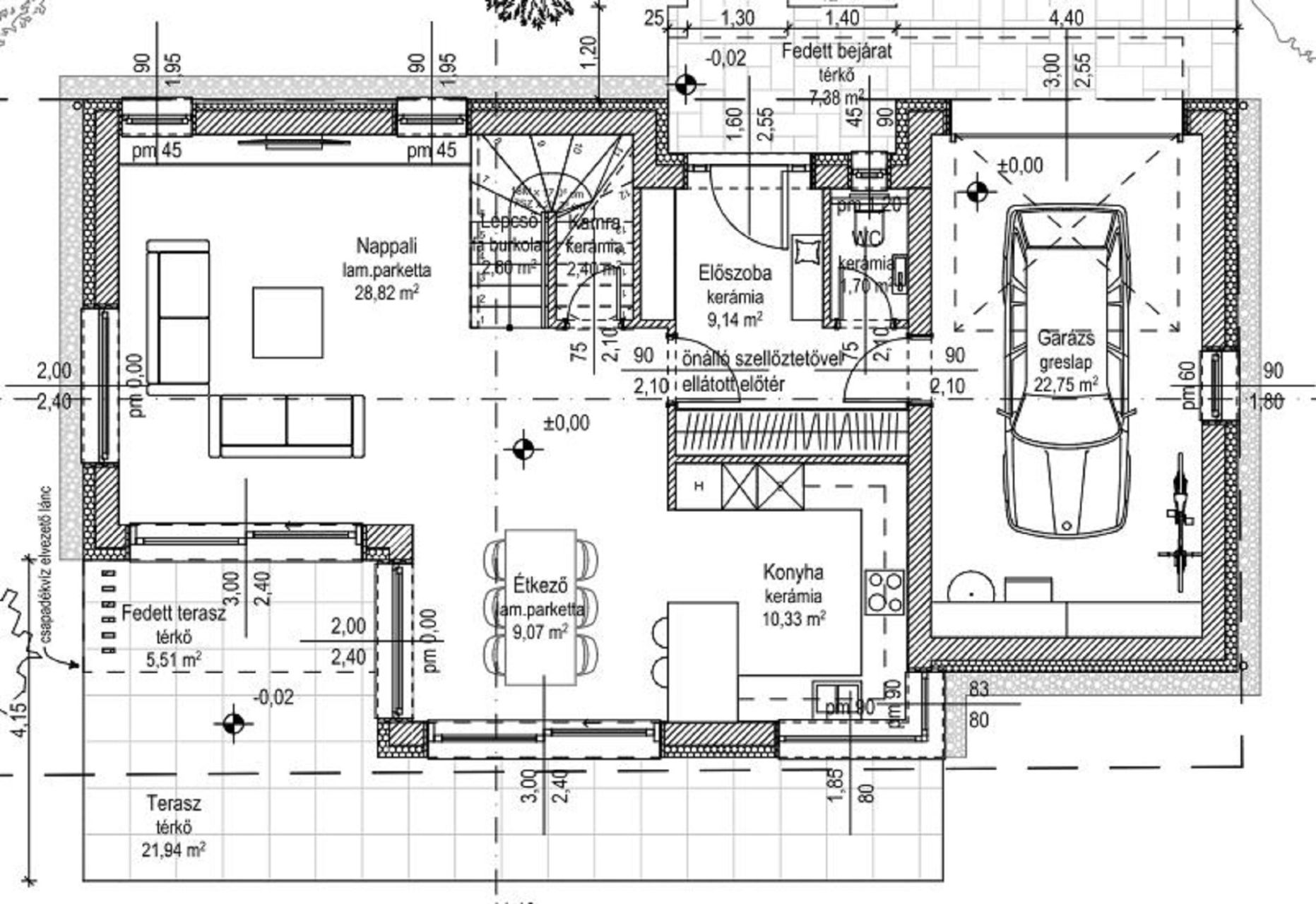Tágas, világos terek, kényelmes elrendezés. Nagyobb családok számára is alkalmas ház.